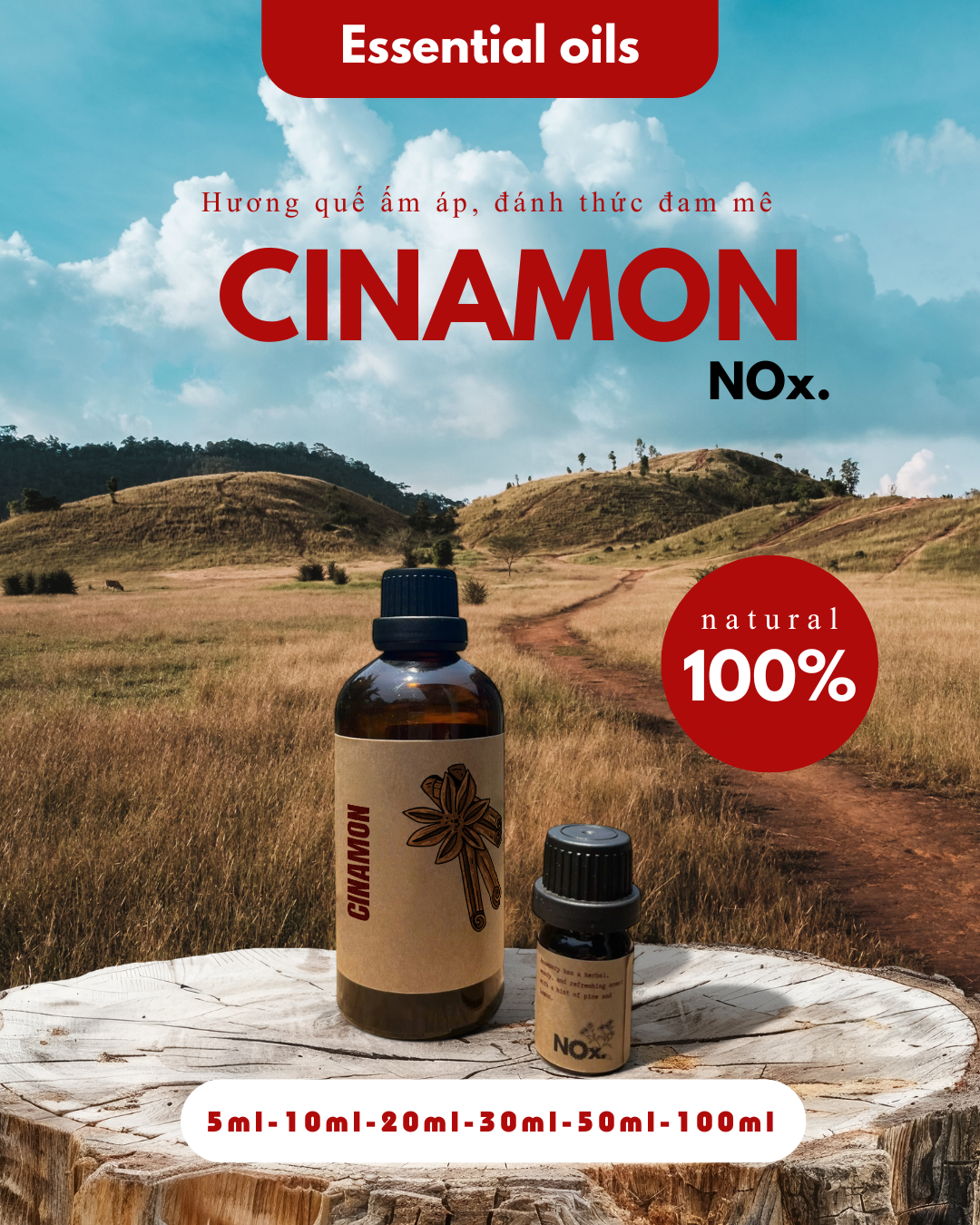 🍂 NOX cinnamon essential oil is extracted from cinnamon bark, featuring a warm, spicy aroma. Cinnamon has long been known for its powerful antibacterial, anti-inflammatory properties and ability to warm the body. The strong aroma of cinnamon essential oil helps improve blood circulation, reduce stress and fatigue, while supporting digestion and effectively cleaning the air.