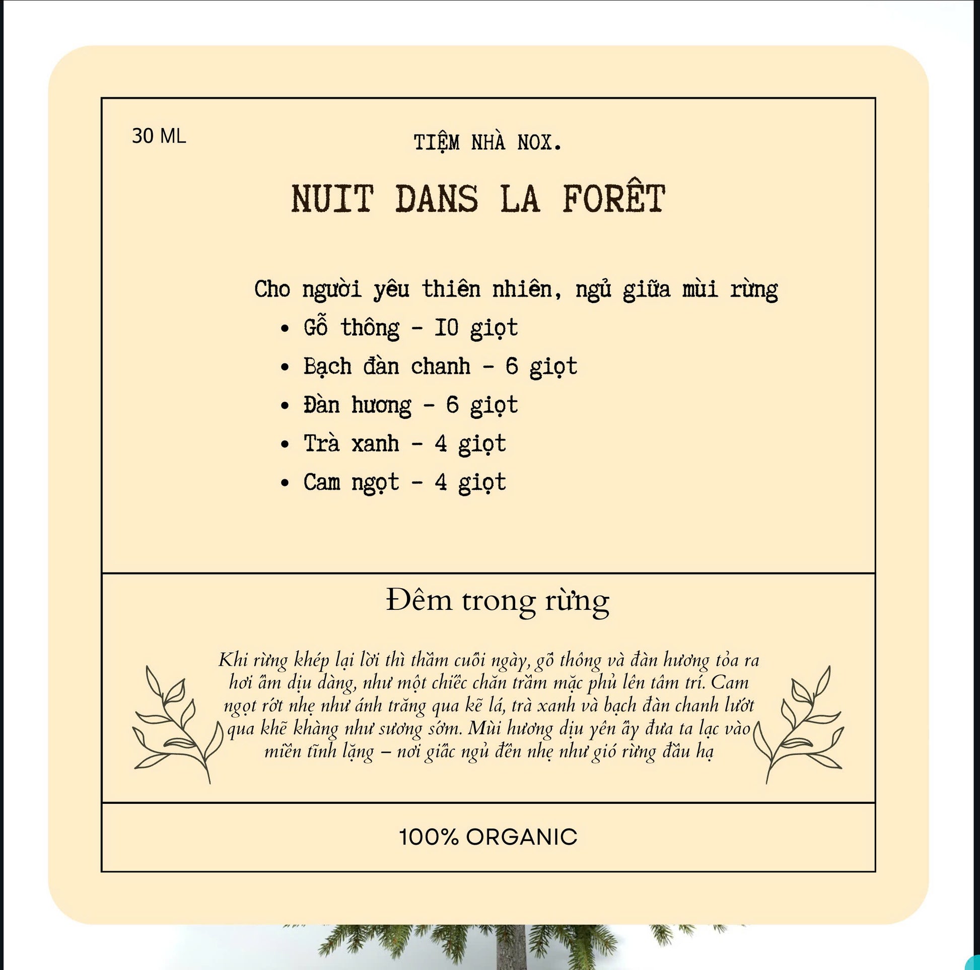I present to you "Nuit Dans La Forêt" – a walk in the forest at night, where the scents tell the story of foliage, pine trees and mist.